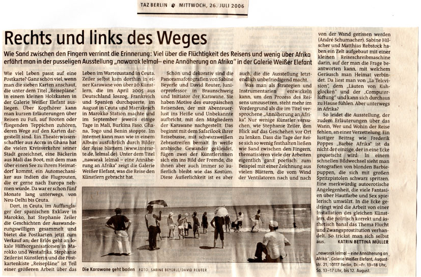 Installation „Spiel mir das Lied...“, Ausstellung im Allgemeinen Konsumverein in Braunschweig und der Galerie weisser elefant in Berlin (taz-Kritik vom 26.07.2006)
